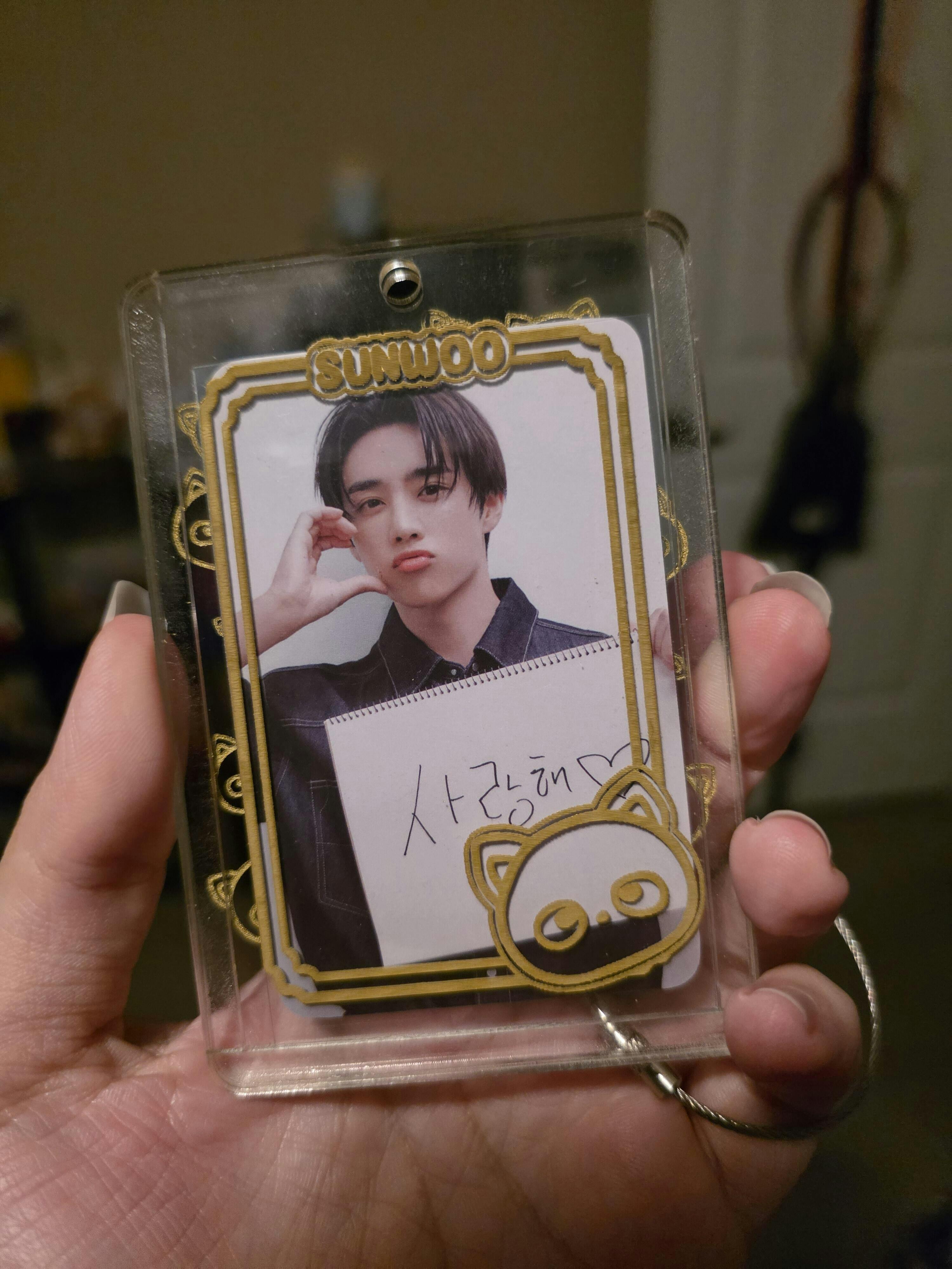 Wanted to have a way to display my double sided Sunwoo card, and this was absolutely perfect and so cute. Also was able to get the cherry blossom backing for my cherry blossom yeosang pc. Its literally perfect.